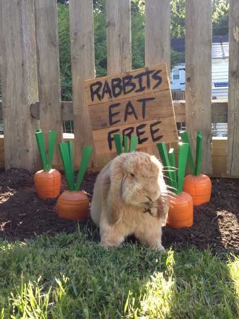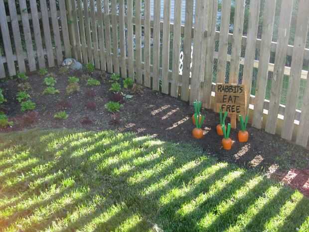 Por último, hice una rápida señal rústico de madera plataforma y había pintado un mensaje para los conejos locales. Acabado de poliuretano.