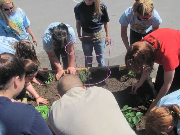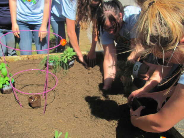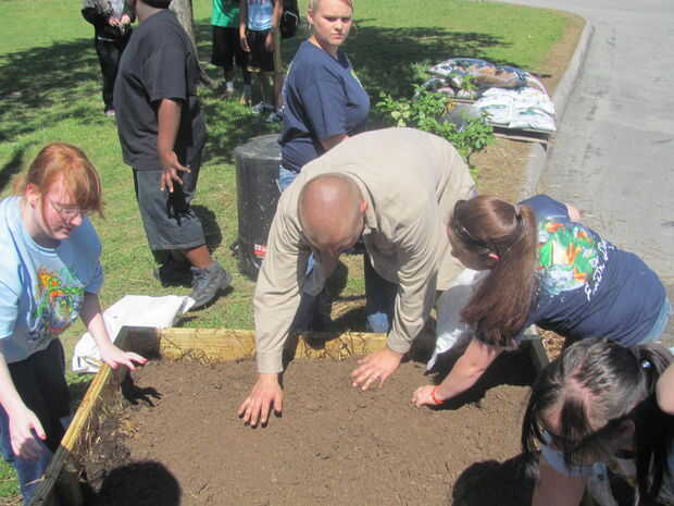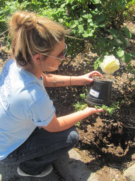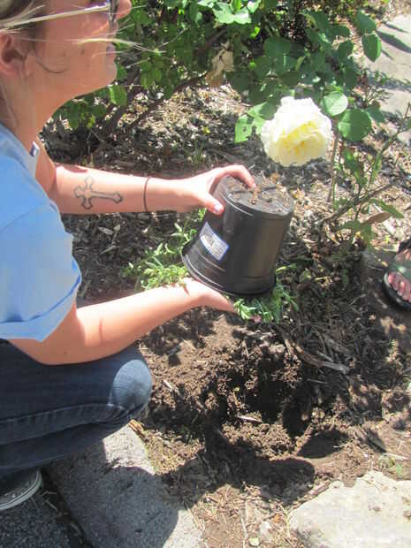 Poner la planta en el suelo y luego cubrir y pat hacia abajo.