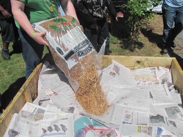 Cómo crear un jardín de lasaña: Janko, Riv y Jake.Paso 1: Paso 1Paso 1: Preparación para terrenoPasto lo más corto posible y dejan la hierba recién cortada en el suelo.Para nuestro ejemplo, usaremos un jardín cama elevada.Paso 2: Paso 2Paso 2: Hacer