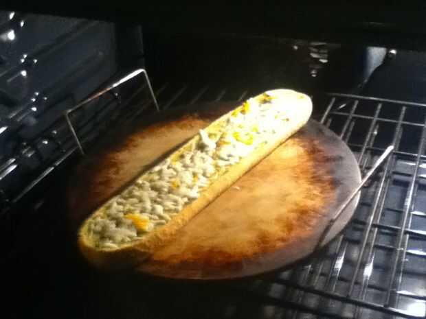 Obtener un gloria 1 pedazo de pan de ajo y añadir el queso rallado, ajo picado/horno, mantequilla, mantequilla de ajo, condimento sal e italiano. Finalmente hornear durante 5-10 minutos o hasta que el pan esté crujiente.