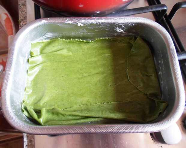 En caso de que es demasiado grande se puede doblar o cortar, ha hasta... Si es demasiado pequeño, simplemente agregar otro pedazo de pasta! No te preocupes, no tiene que ser exacta.