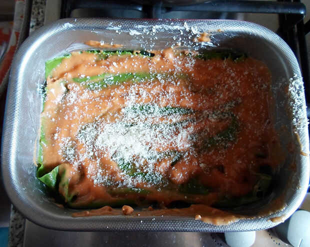 Hornear a 200C (400F) durante unos 25/30 minutos (comprobar de vez en cuando tu lasaña!).