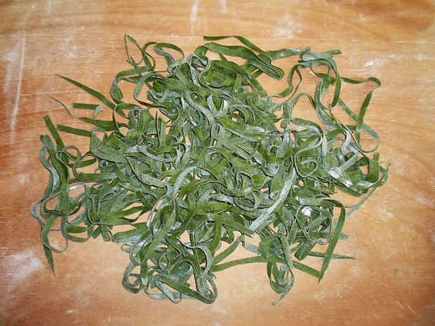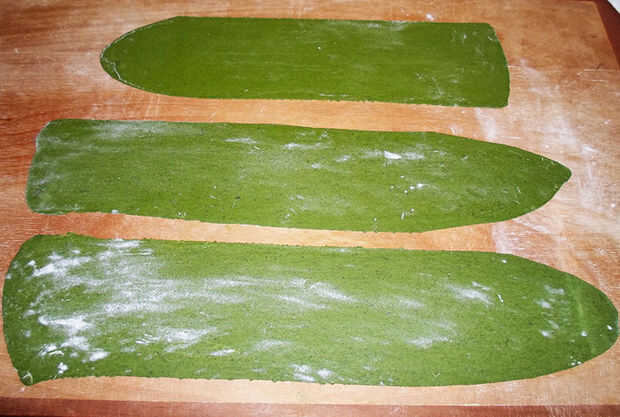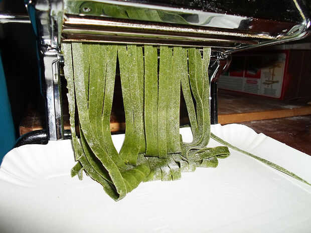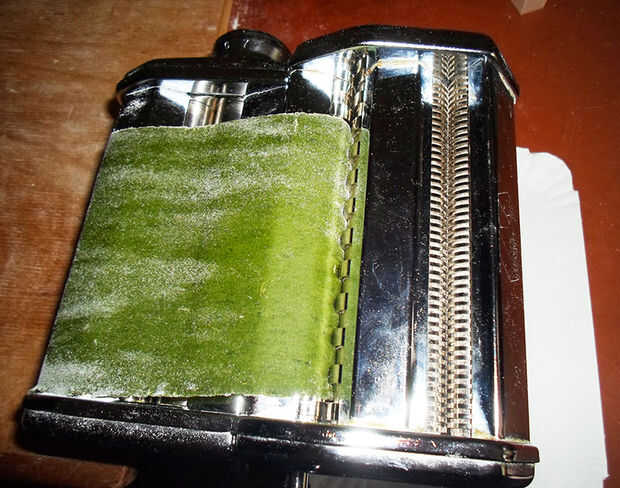Deje que la pasta seca por un tiempo para que no sea demasiado pegajoso, luego pase a través de la máquina de pasta especial parte que corta tallarines.