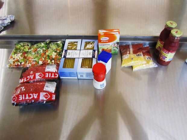 Ingredientes: carne de picada, saltear verduras, sal, pimienta, hojas de lasaña, salsa de tomate, especias, aceite de oliva, mezcla de salsa para lasagna