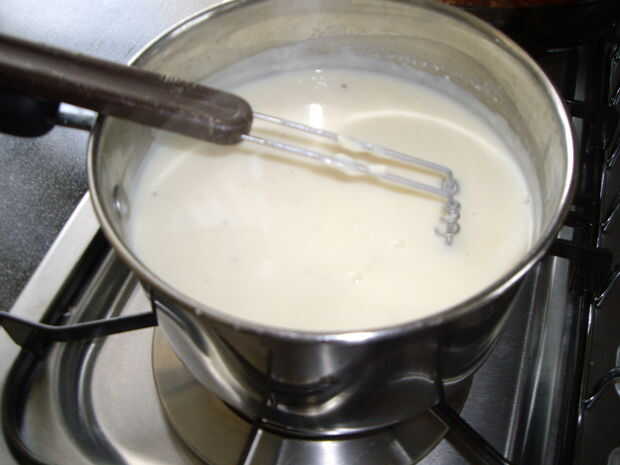 Para la Bechamel derretir la mantequilla en una sartén y añadir la harina. Batir bien hasta que la harina haya absorbido la mantequilla, luego agregar la leche. Batiendo todo el tiempo, salpimentar bien y dejar espesar un poco. Luego agregar el queso parmesano rallado. Cocinar hasta que espese bien.