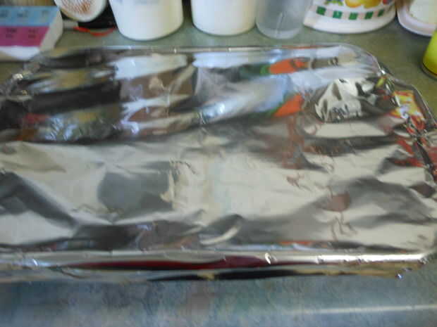 Cubierta con papel de aluminio y Hornéela a 350° durante 1 hora.