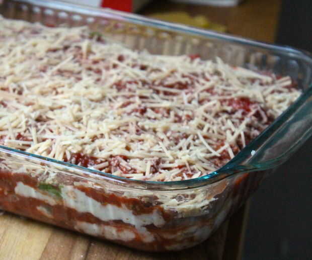 Se trata de una vuelta en un plato clásico. Lleno de sabor y deliciosos vegetales y salsa, esta lasaña va seguramente por favor un San Juan Domingo almuerzo.Paso 1: ingredientes-3/4 de queso ricotta-20 hojas de lasaña-berenjenas 2-calabacín 5-4 tazas