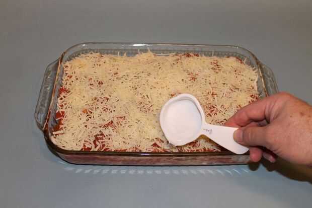 Para aquellos de ustedes que simplemente no pueden ver cómo esta no-boil-regular-noodle-pasta-thing se va a trabajar puede calmar sus nervios mediante la adición de un 1/4 taza de agua (vierte por los lados) a la lasaña.