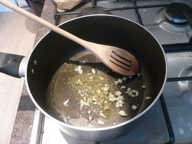 Dejar freír por un ratito y luego agregar las hierbas secas de imagen 3.