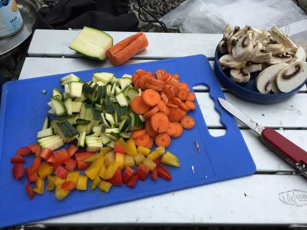 Consejo: Si estás reduciendo el peso de su viaje de camping, todos estos vegetales deshidratan muy bien y se puede rehidratar 30 minutos antes de cocinar.