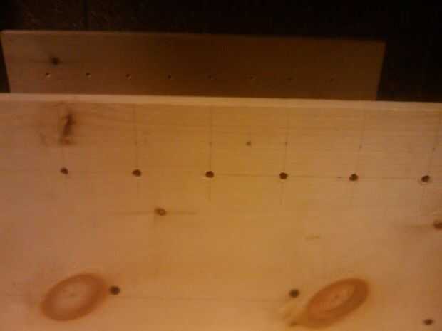 2. perforar agujeros en las piezas rojas para láseres y fotodetectores (ver primera foto). Espacio hacia fuera sea ancho alrededor de la mitad de la mano de espacio entre cada láser o célula fotoeléctrica. Taladre los orificios colocando una tabla encima de la otra y perforar ambas tarjetas a la vez (así, la línea de agujeros).