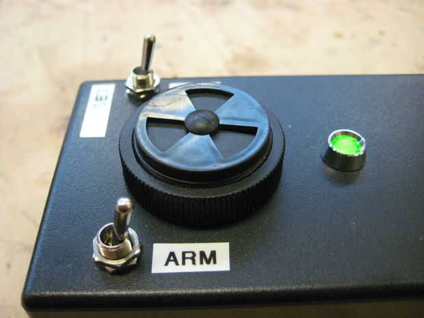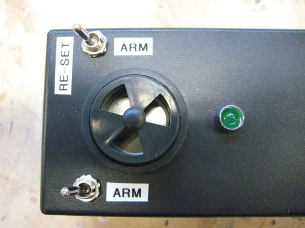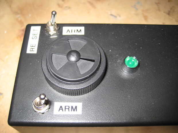 El interruptor en la parte superior izquierda enciende la LDR la mitad del circuito y el de la extrema derecha se convierte / re-establece la alarma.