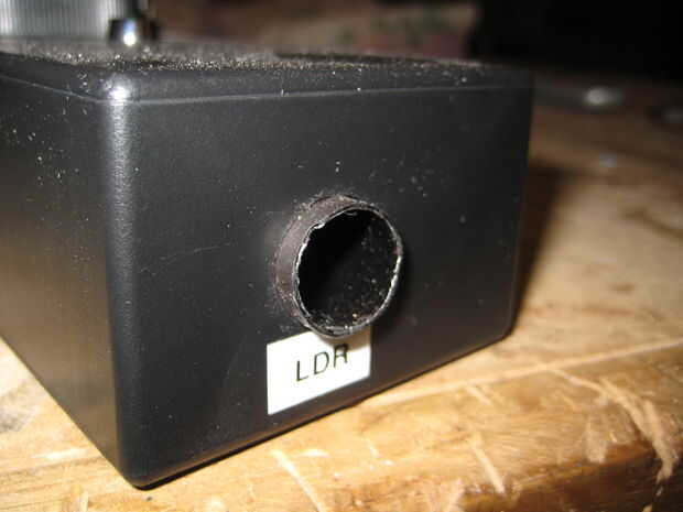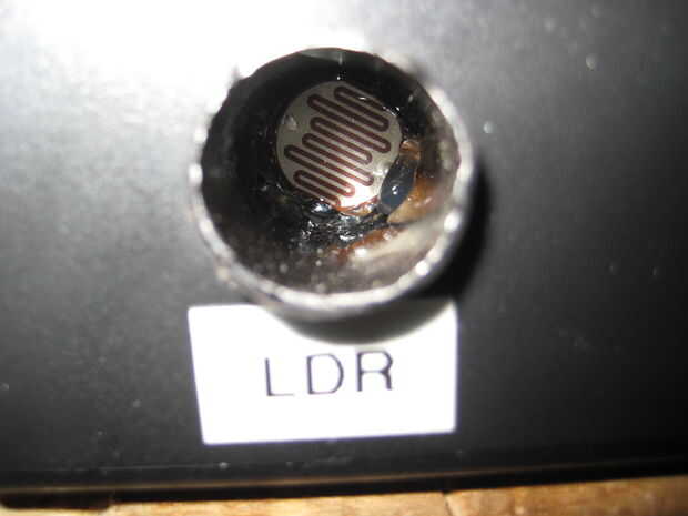 También puede ver lo que me refería utilizando un tubo como un protector de luz para el LDR, funciona muy bien y permite que el sistema es muy sensible.