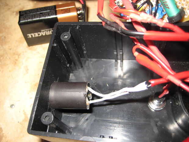 La alarma que yo también tenía la función hacer una pulsación sonido en lugar de un solo tono que era fresco y también me permite tener cierto control sobre el volumen de la alarma. La alarma que elegí es clasificada en un muy fuerte 120Db a 12 voltios, pero Im utilizando sólo una pila de 9 voltios y sólo 6 de los voltios que sea a la alarma, tan Im audiencia sobre 60 dB que es bastante ruidoso en una batería llena.