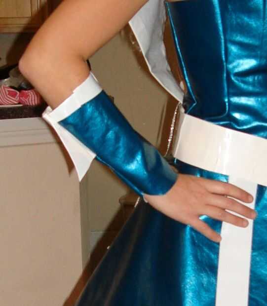 Tienes que junte la tela derecho contra derecho (longitudinalmente) e Introduzca su punto si quería y luego coser a lo largo de la costura.  Cuando se activa el lado derecho de la tela que tendrá su guantelete con spike atado y casi listo para la gran noche!