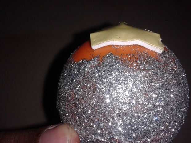 1) pegue la cinta de doble cara en la zona libre de brillo en la bola.