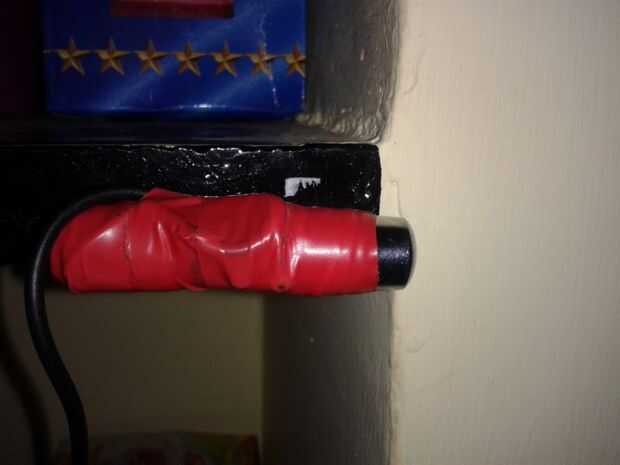 3) mientras que la pasta hacen que solamente una pequeña área de la cinta de doble cara pega en la cabeza de la botella. Esto permite solamente la bola a vibrar mientras que el ventilador funciona.