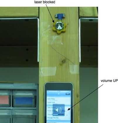 Este ejemplo mostrará cómo combinar un puntero láser estándar, schemer y muelle mágico modificado especialmente para crear un control de remoto de iPod que puede onda en.   (TODO: necesitamos una película de Brad que agita las manos)