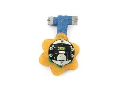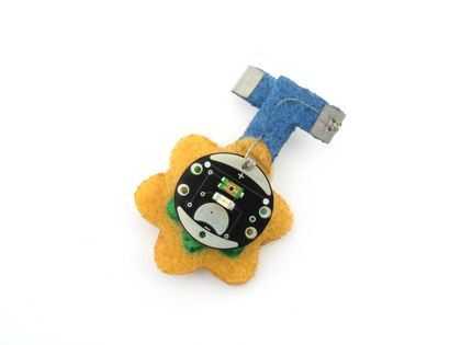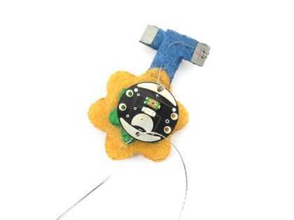 En primer lugar, conectar alimentación a schemer. Para este proyecto, usaremos uno de los titulares de nuestra batería suave. Para una instalación más permanente, un adaptador de alimentación de 3V sería más práctico.Coser un par de lazos alrededor de los + agujero y pase por el fieltro a la + tab en la parte superior del soporte de pilas. Hacer lo mismo con el - agujero. Tenga cuidado de sólo pasar el fieltro para que no entren en contacto con cualquier parte de la + tab.
