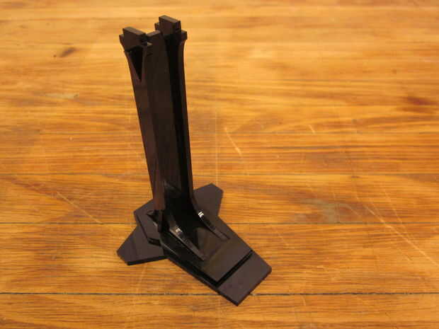 mi hija necesita un soporte de guitarra para su guitarra de tamaño 3/4. Tuve algunos multilaminada de abedul báltica de 6mm y un cortador láser. Sólo cinco piezas y un montón de estrellas para arrancar. NinguÌ n pegamento, ninguna pintura. Sólo viene