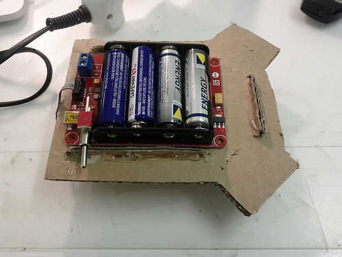 Aquí es cómo el recinto dispositivo prototipo con cartón y un cúter (inspirado por el