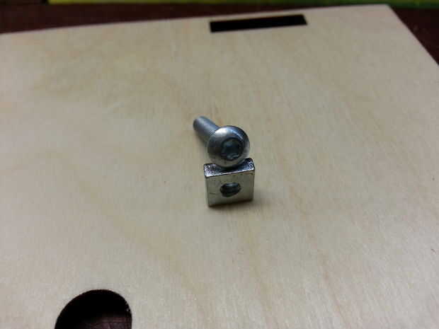 Para la fijación de la madera contrachapada usé tuercas cuadradas de 1/4" y 6/32 3/4" tornillos Torx.