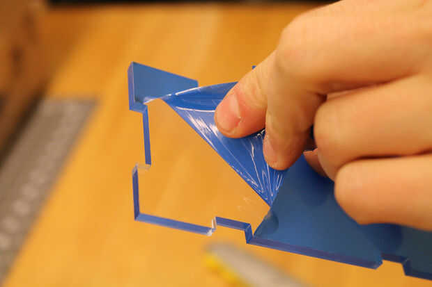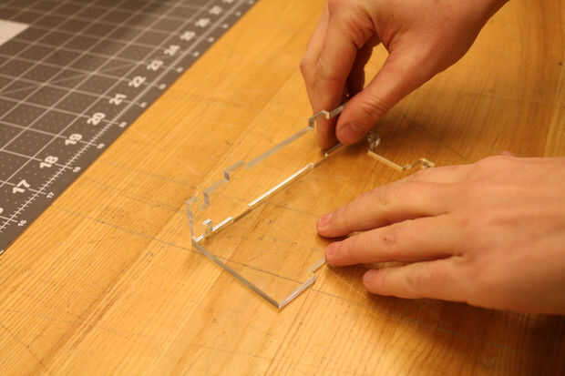 Una vez está hecho el corte, retire el plástico protector de sus piezas de lasercut. Y ahora la diversión parte: Alinee las muescas y coloque su caja juntos! Si las muescas se aprietan, la caja se sujetan por sí mismo. Que es una buena cosa para el siguiente paso de pegado, porque entonces usted no necesita una mano extra o algunas abrazaderas para mantener todo constante.