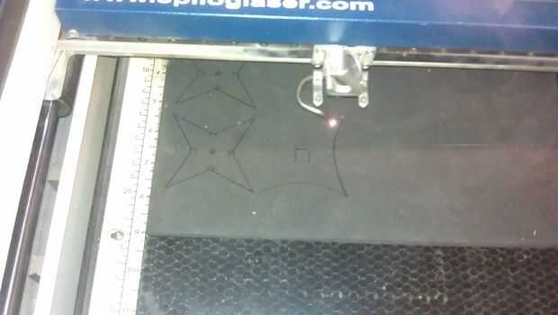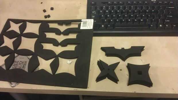 Guardar su archivo de vector y cabeza Techshop, o en otro lugar con un cortador láser e ir a la ciudad. Utilizando la configuración correcta creo cada 8.5 x 11 hoja de espuma de artesanía tomó alrededor de 1 minuto para hacer 8 lanzando estrellas y 2 batarangs.