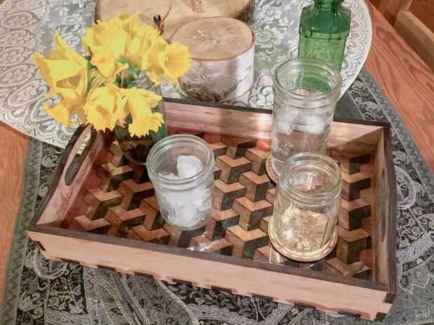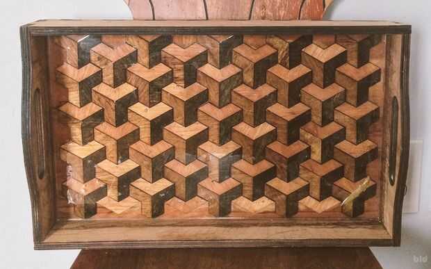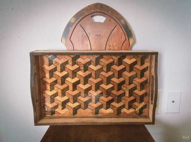 - Crear una imagen interesante en el piso de la bandeja que Acentos la precisión de la cortadora del laser, de la nada pero el mismo laser corta madera, teñido para diferentes tonos.