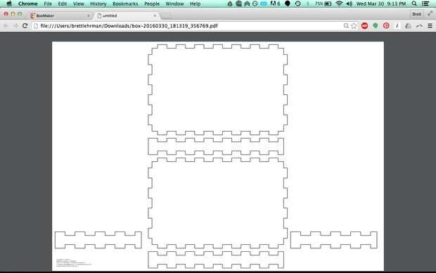 Una manera fácil de obtener la geometría apretada para presión construcción caja tipo algo, es empezar con boxmaker.connectionlab.org. Todo lo que hacen es perforar en las dimensiones de su caja, golpeó "diseñarlo" y viola! Tiene un archivo de vector PDF que se puede utilizar para cortar dicha caja.