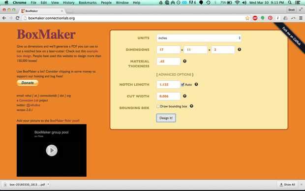 También, asegúrese de haga clic en "Opciones avanzadas" y establezca el ancho de corte entre 0.008-0.004, que es aproximadamente la cantidad que el laser quita. No es mucho, pero suficiente para hacer una diferencia si usted quiere un buen ajuste. Es tan agradable que el fabricante de la caja tome en cuenta!