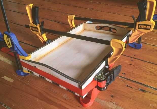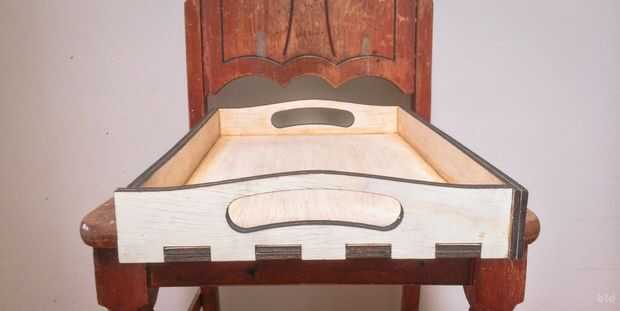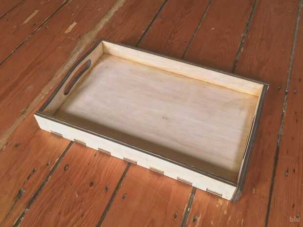 9. Opcional: Frote hacia abajo la bandeja entera con aceite mineral, poliuretano, muebles o cualquier otro revestimiento de madera. Asegúrese de comprobar la etiqueta del fabricante para su grado de seguridad de alimentos si usted piensa que cualquier cosa comestible vendrá en contacto con la bandeja.