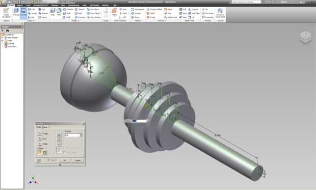 Con la herramienta "girar" en Inventor, seleccionado la línea de centro del bosquejo, hice un giro completo (dos imágenes) y crea un modelo 3D de los Dalek pedúnculo como se muestra en el tercer, cuarto, quinto y sexto imágenes.