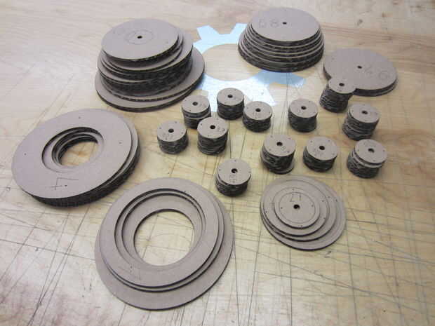 3. Después de cortar todas las piezas, he recogido (segunda foto) y ponerlos en orden numérico (tercer a quinto fotos).