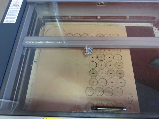 2. Usé el cortador del laser para cortar cada hoja.  He utilizado el color mapping ajustes en las preferencias de impresión láser cortador para cortar los contornos de la parte azul y utiliza un ajuste de potencia baja para el cortador del laser marca los números rojos en las partes.  Utilicé un cortador del laser Epilog Helix 45 watt con estos valores: