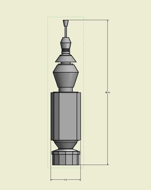 En la primera foto se muestra el modelo terminado. La segunda foto muestra a la brújula Nomad real en la sección de ingeniería de la empresa de USS. La tercera imagen es un diagrama 2D del modelo que creado.