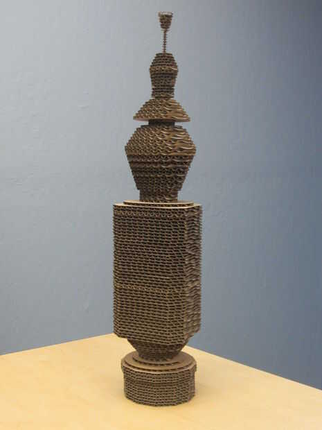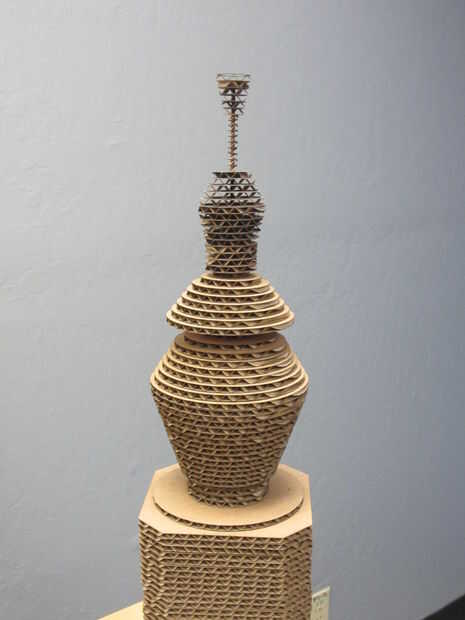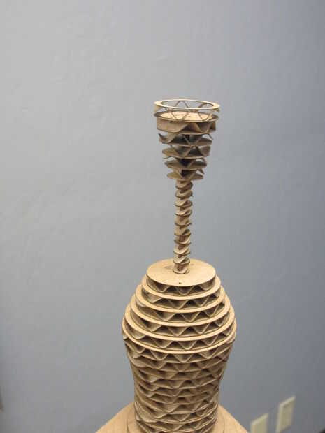 - Después de cortar todas las piezas, I poner la varilla en un tornillo de banco y deslizarse cuidadosamente cada parte en orden a la varilla con cola blanca en el medio. Encontré que obtuve los mejores resultados haciendo unos seis rebanadas a la vez y esperar que el pegamento sostener antes de hacer el siguiente grupo de rebanadas. Antes de poner cualquier rebanadas de la varilla, pongo una pequeña cantidad de pegamento en la parte inferior de la barra donde los cortes inferiores se sentarían para asegurar que la barra se pega al modelo. También puse una pequeña cantidad de pegamento en la parte superior de la varilla antes de agregar el último rebanadas para la antena. El montaje y pegado de todas las rodajas toman unas tres horas. Después de seco el pegamento, quité cuidadosamente el modelo de la pinza sujetadora y el corte de la parte de la varilla sobresale de la parte inferior con un par de cortadores de alambre.