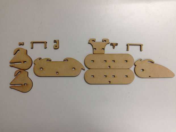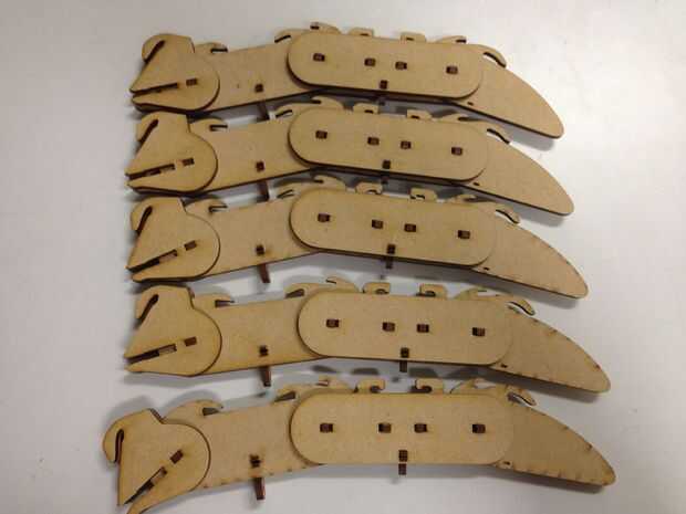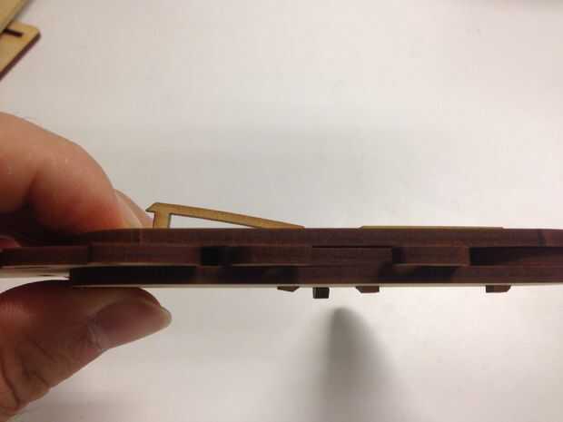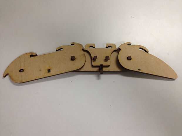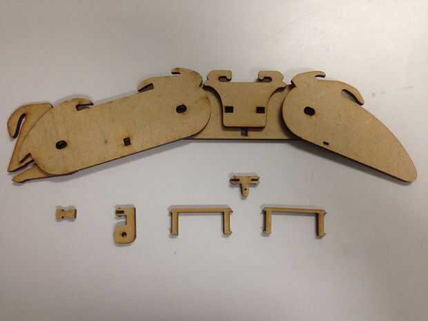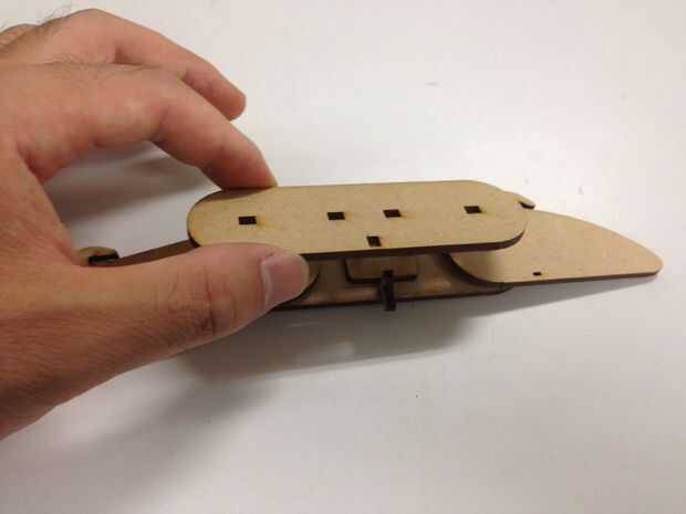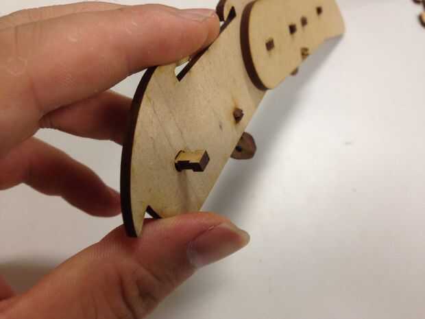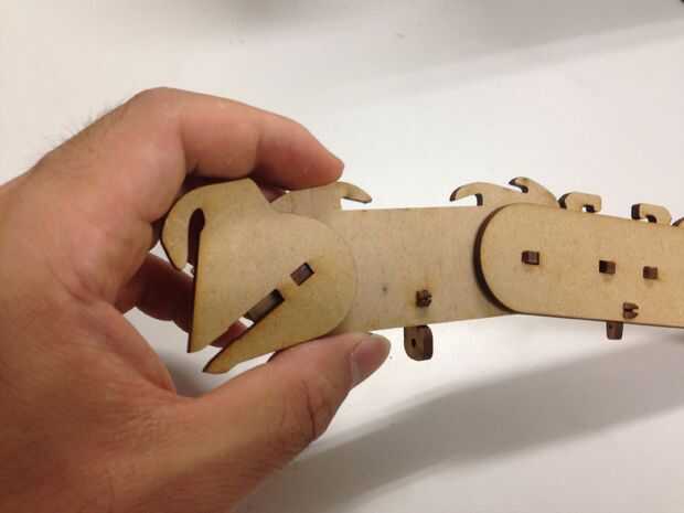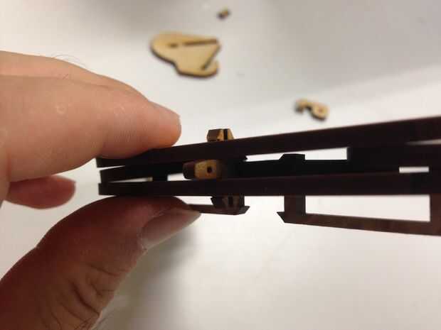 Hay un montón de pequeñas piezas para los dedos y honestamente hablando, el proceso de montaje es un poco complicado - que son el resultado de bajo concepto de la utilización de la mayoría de corte láser, de lo contrario, debe ser bueno, así con alguna varilla de madera como la articulación.
