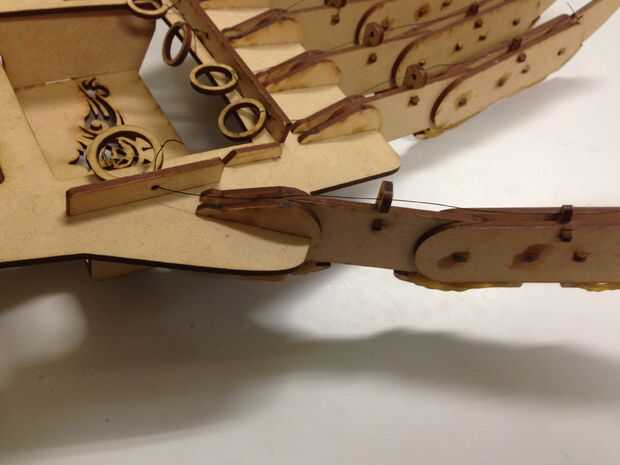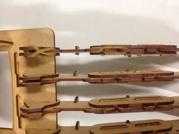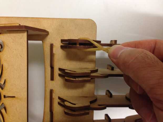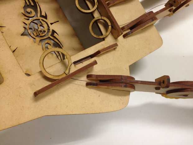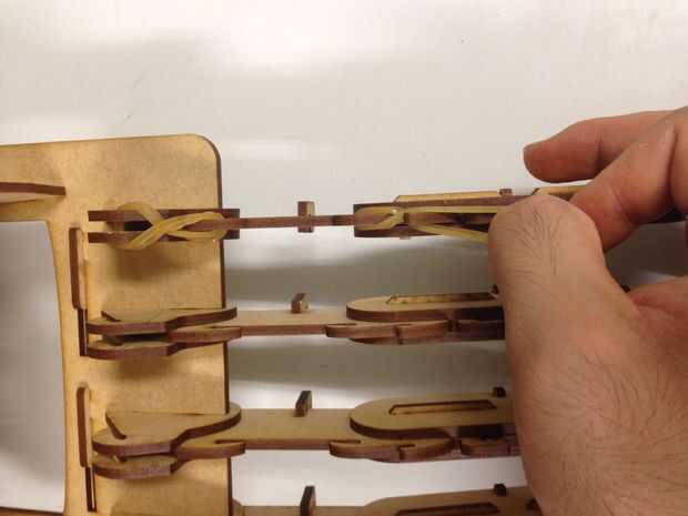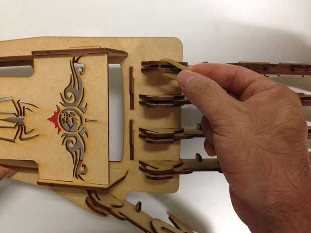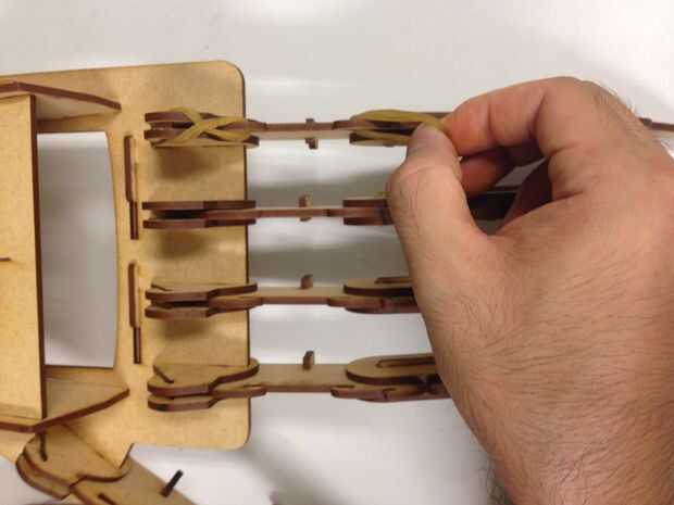 La banda de goma trabajando como un tendón para las garras, proporcionar las fuerzas de tracción, como gancho la banda elástica como las fotos, y poner el hilo de pesca aunque el orificio diseñado y elegir según los dedos de un anillo, lo hicimos!
