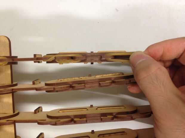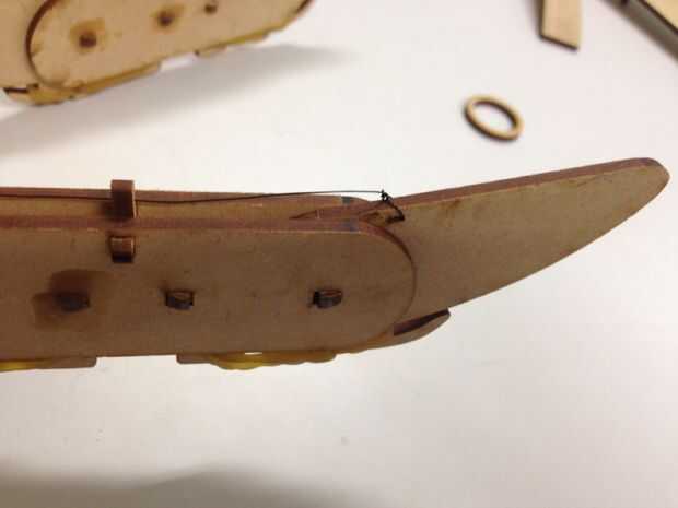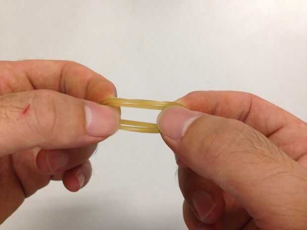 橡皮筋之於大手就像韌帶一樣, 提供了連結關節的拉力, 只要如圖將橡皮筋在鈎狀處, 再將釣魚線由我們設計的孔位穿過去、配合你手指的粗細選擇圓環作為套頭, 大手就大致完工啦!