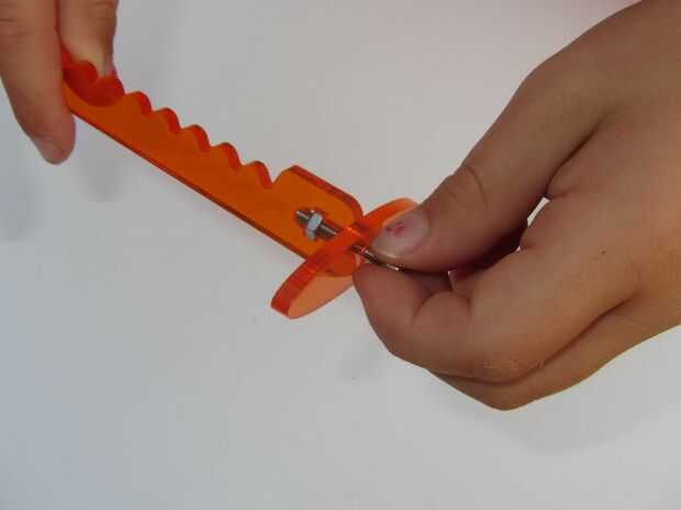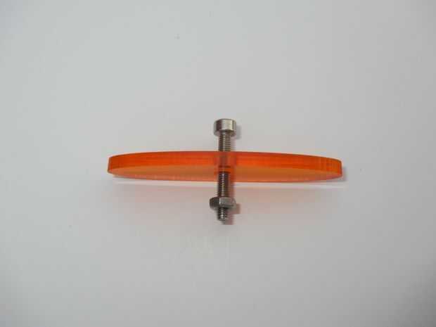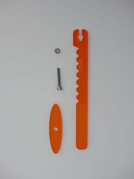 Poner el tornillo de máquina a través del agujero en la "hélice" y poner la tuerca en el extremo que se pega a través de. Sólo tornillo en un par de mm. traer la tuerca y el tornillo en la ranura y apriete a mano. Hecho!