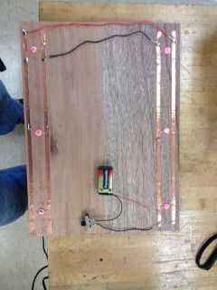 Para mi LED de alimentación usé una batería de 9 voltios conectada a una resistencia de 330 Ohm. Usé cinta de cobre para conectar mi 6 LED en un circuito en paralelo. Conecté el lado positivo de mi batería a mi resistencia entonces al lado positivo de mi cinta de cobre. Entonces del lado negativo de la batería de mi había conectado un switch, entonces el interruptor fue la negativa pieza de cinta de cobre. Usé alambre juntos las piezas positivas de la cinta y negativo juntos piezas. Yo sólo rojo LED pero si usted lo está haciendo, puede hacer cada otros colores LED azul para coincidir con los muertos agradecidos.