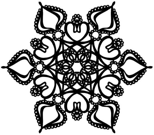 -Doblar una hoja de papel en sextos y 1/6 de su diseño en esa cuña. Es mejor usar un marcador negro grueso para dibujar en su diseño (cuanto más gruesa la línea, el más robusta será el ornamento).