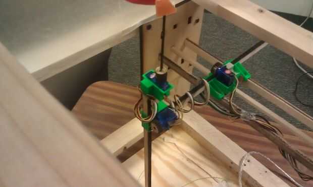 En primer lugar, coloque el carro en las pistas y x rack e instalar uno de los servos con un engranaje en la ranura del servo en la parte inferior del carro para mantenerlo en su lugar. Luego, presione la tapa del estante y en el extremo de la cremallera y. Luego, coloque la rejilla y en el carro e instalar uno de los servos con un engranaje en la ranura del servo en la parte superior del carro para mantenerlo en su lugar. A continuación, presione la tapa de rejilla de z en el extremo de la canasta z. Después de eso, deslice la parrilla z a través de la tapa del estante y e instale el servo restantes con un engranaje en la ranura del servo en la tapa del estante y a mantener en su lugar. Finalmente, instale el servo del pasado en la ranura de servo encima de la tapa de rejilla de z. Tenga cuidado de que los cables se pasan correctamente a través de su ranura y no se pellizcan en el servo.