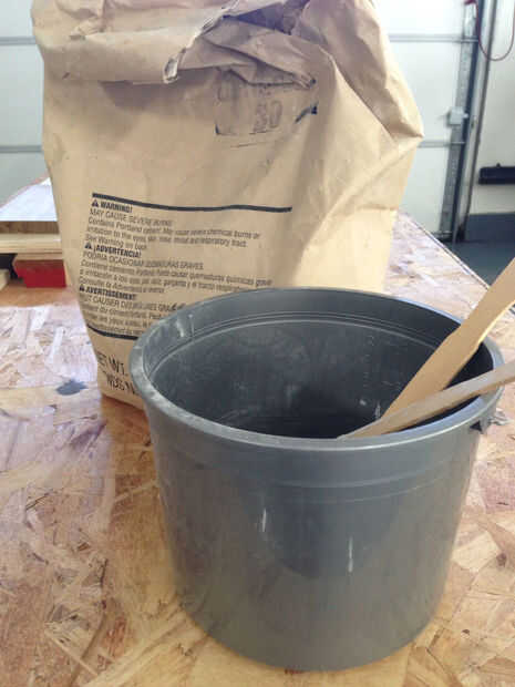 Ahora se pesa la mezcla de polvo de yeso y agua (consulte la bolsa / o fabricante para mezcla exacta)-usar dos cubos y mezcle el polvo en el agua lentamente mientras revuelve. Para un pequeño pedazo de este revuelo pintura joystick funciona bien para mezclar el yeso.