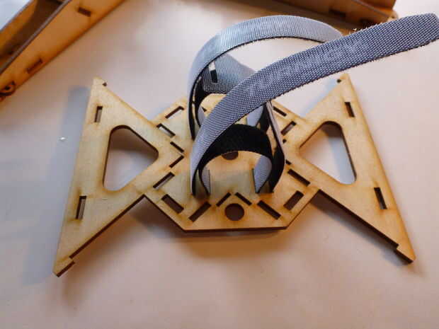 8. Instale las correas de la batería en la pieza inferior como se muestra.  Será más fácil ahora antes de pegar la parte inferior pieza en que va a ser para los peces a través de más adelante.