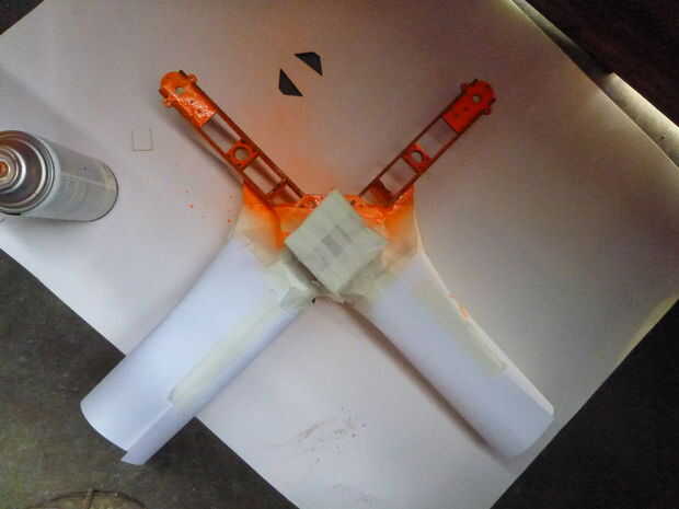13. use cinta de enmascarar y papel para máscara todo excepto los dos brazos que apunta su flecha entre (es decir los brazos delanteros). Pintar los dos brazos delanteros con uno de sus colores.