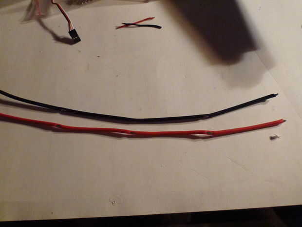 12. estirar el cable negro al lado del cable rojo y cortar el aislamiento en los mismos intervalos como lo hizo en el cable rojo.
