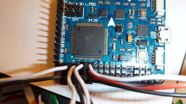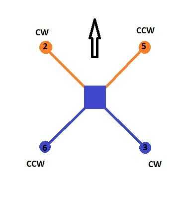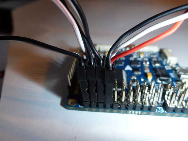 5. Conecte los conectores de servo de cuatro de los controladores de velocidad a la tarjeta controladora de vuelo como se muestra. El número que marcó junto a cada motor en un paso anterior corresponden al número que se muestra en la imagen y del tablero.