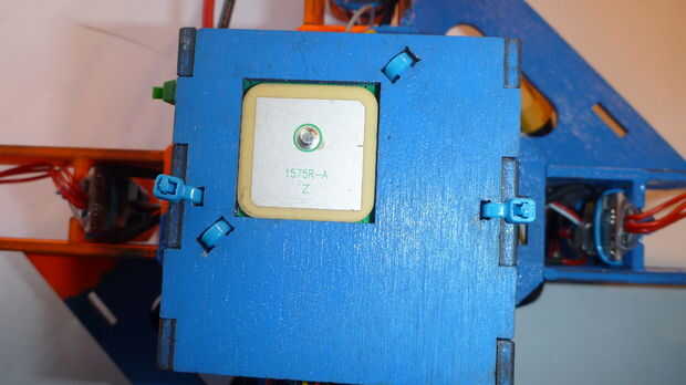 8. zip empate el GPS a la pieza superior de la plataforma electrónica. Conecte el cable GPS. Zip empate la pieza superior a la plataforma electrónica.